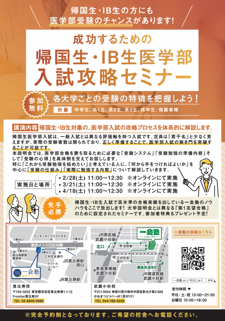 帰国生IB生対象:『帰国生IB生の医学部入試攻略セミナー』開催決定!
